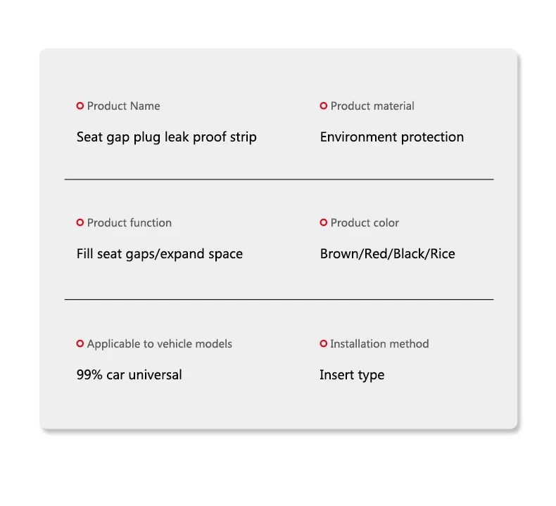 Product form Car Seat Gap Filler - 2pcs $6.99 Car Seat Gap Filler 2-piece universal fit Prevents items from falling Leak-proof design Storage organizer function Easy installation red 2PCS black 2PCS brown 2PCS beige 2PCS Color Name red 2PCS black 2PCS brown 2PCS beige 2PCS Add to cart This item is a recurring or deferred purchase. By continuing, I agree to the cancellation policy and authorize you to charge my payment method at the prices, frequency and dates listed on this page until my order is fulfilled or I cancel, if permitted. Share with your friends Share WhatsApp Deel X Pin it Messenger Email