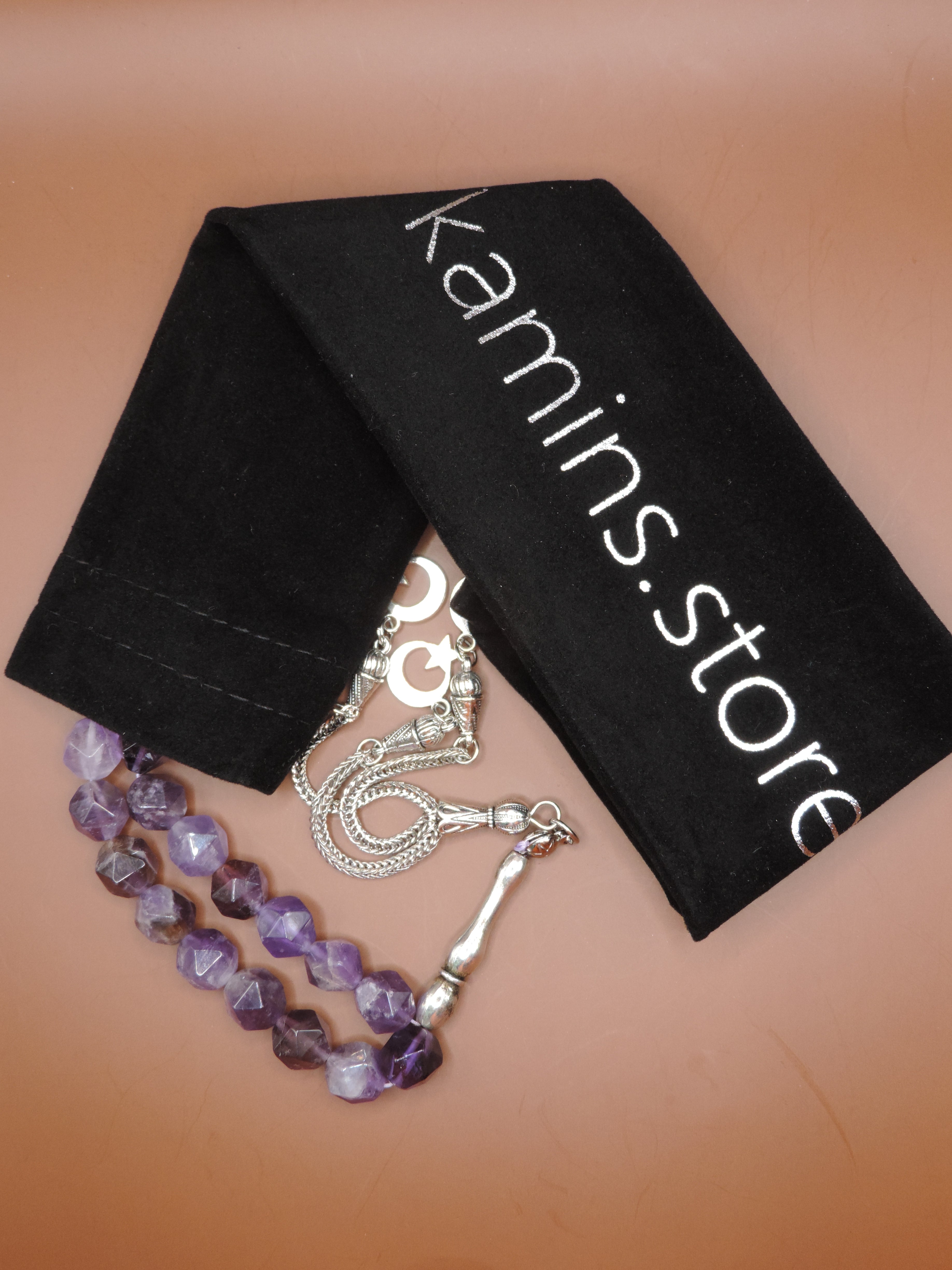 Revered throughout history as a stone of spiritual wisdom, clarity, and inner peace, amethyst has been cherished by seekers and royalty for millennia. Each bead displays natural color variations that make your tasbih truly one-of-a-kind. Handcrafted with meticulous attention to detail, the beads are strung on a durable cord and adorned with an ornate silver-toned chain and elegant decorative tassel.