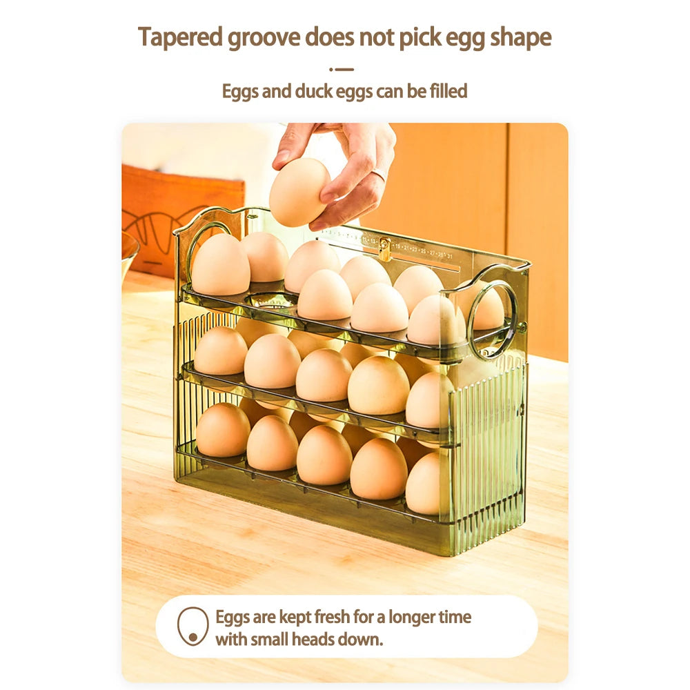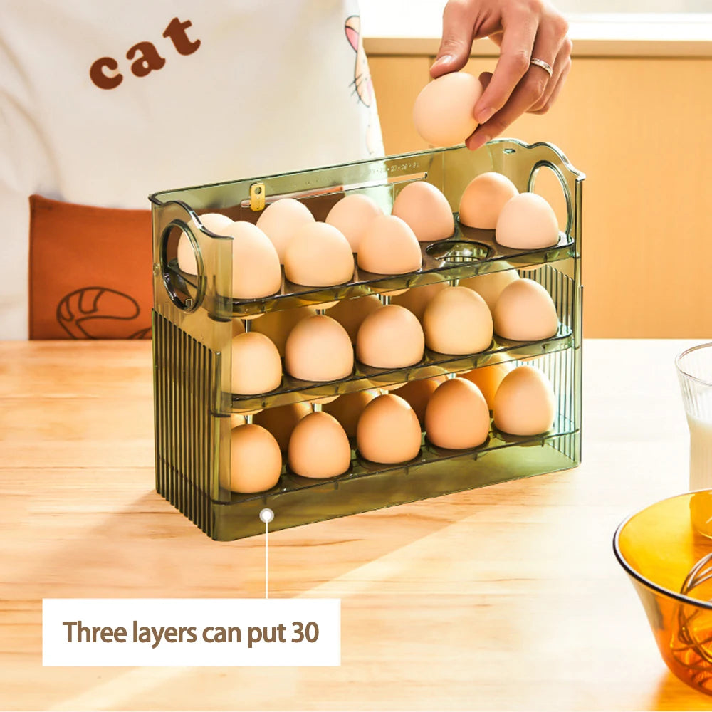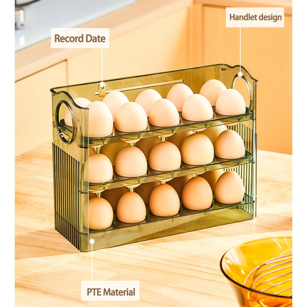 Auto Flip Egg Organizer - Multi-Layer Storage Tray