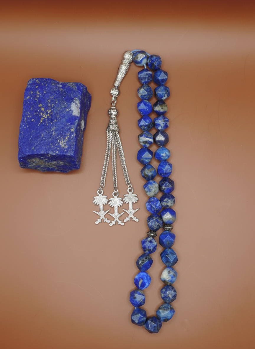 Elevate your spiritual practice with our exquisite Lapis Lazuli Tasbih from Kamin's Collection. Handcrafted with genuine faceted lapis lazuli beads in rich deep blue tones, each stone is carefully selected for its natural beauty and spiritual significance.
